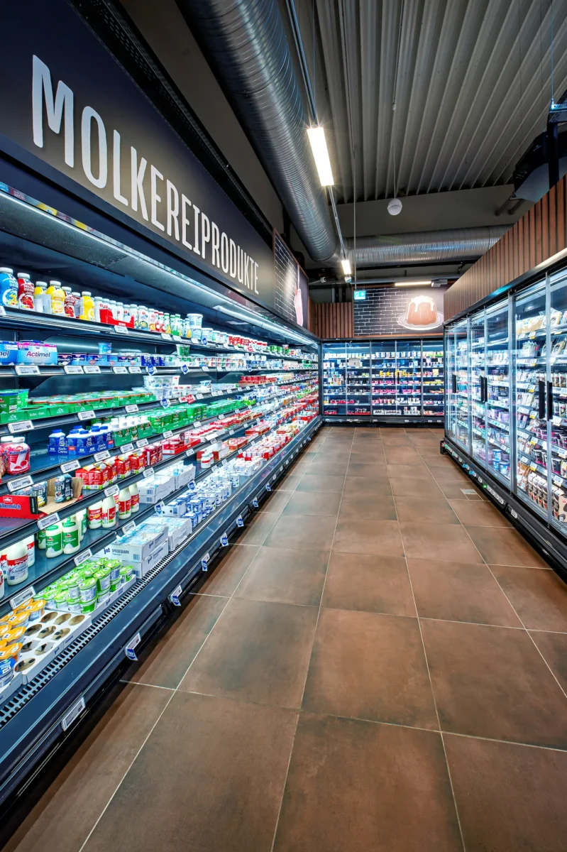 REWE-butikken i Lonnerstadt, Tyskland, blev udviklet som et nybyggeri på en grøn mark. Fra starten var målet at implementere en køle løsning, der opfyldte de højeste standarder inden for energieffektivitet, driftssikkerhed og vedligeholdelsesvenlighed – alle vigtige kriterier i dagens konkurrenceprægede fødevarehandelsmiljø. For at nå disse mål leverede AHT Cooling Systems Germany en komplet systemløsning, der udelukkende er baseret på naturlige kølemidler. Projektet omfattede installation af AHT’s nyeste SPI-system (Semi Plug-in), der er designet med en dobbeltkredsløbsarkitektur for at maksimere systemets pålidelighed.